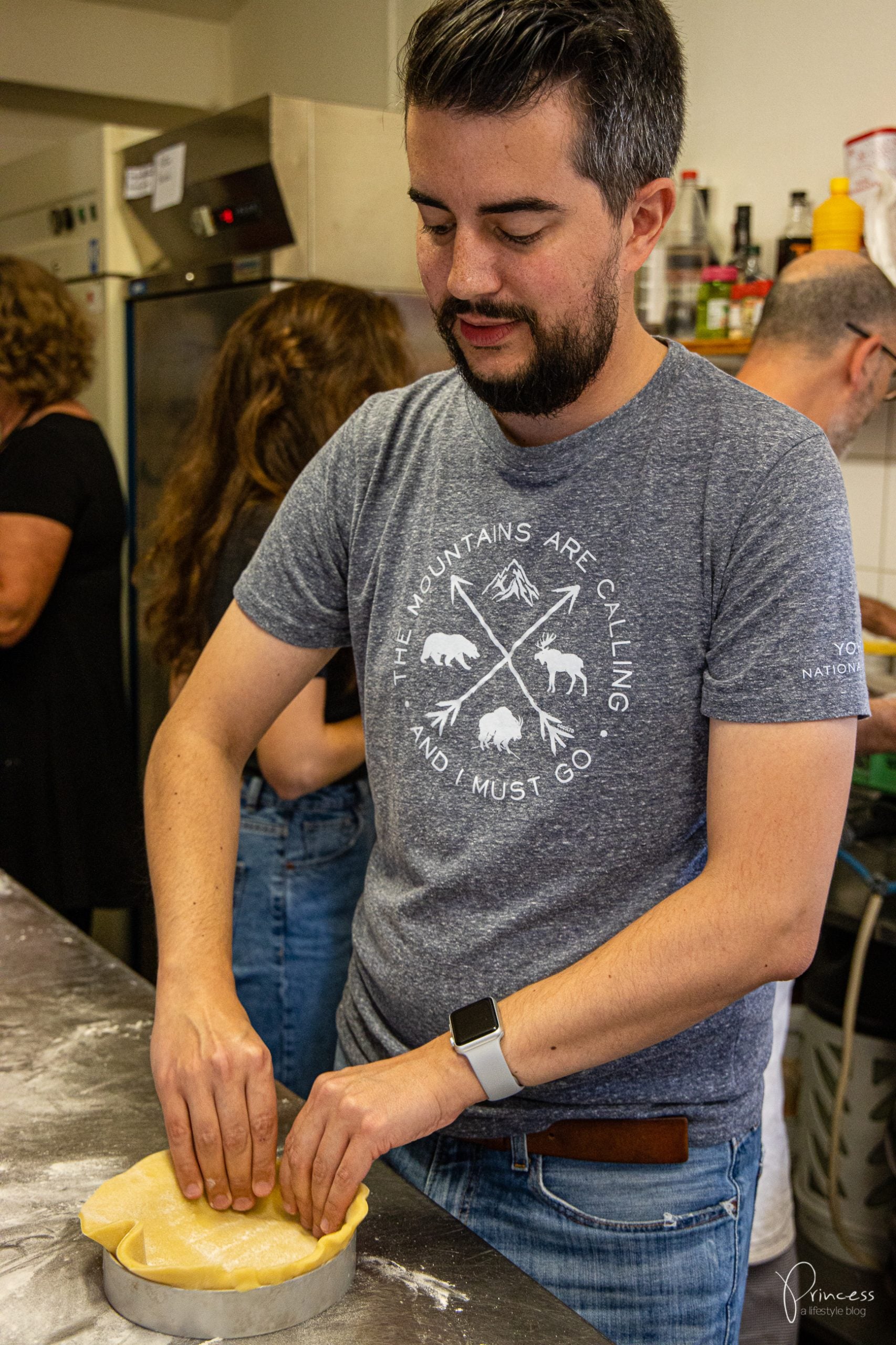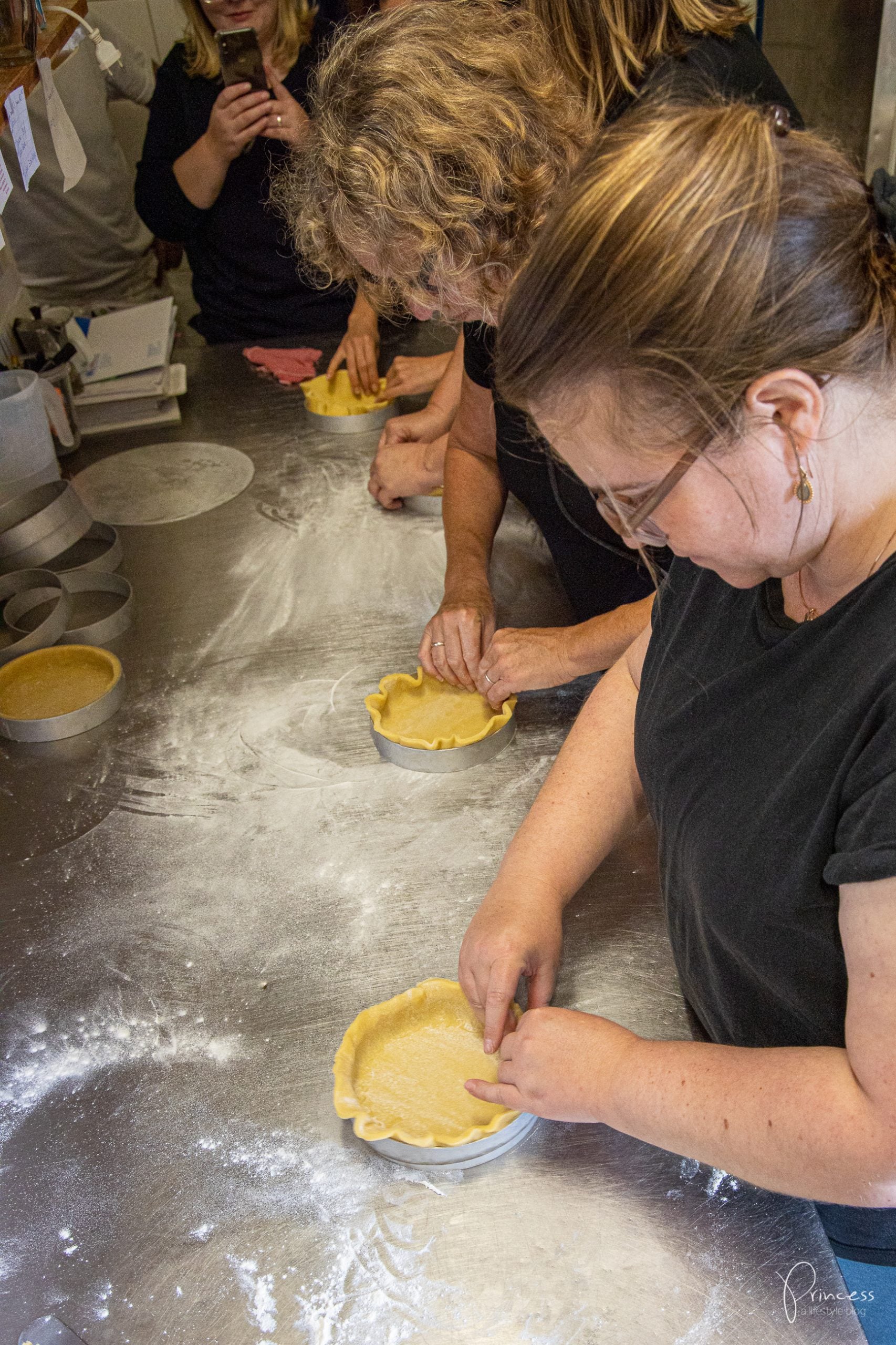 - Den Teig auf einer mit Mehl bestreuten Oberfläche auswallen und in der Form platzieren. Wo nötig noch etwas ausbessern und einen Rand formen. Den Teig einstechen.