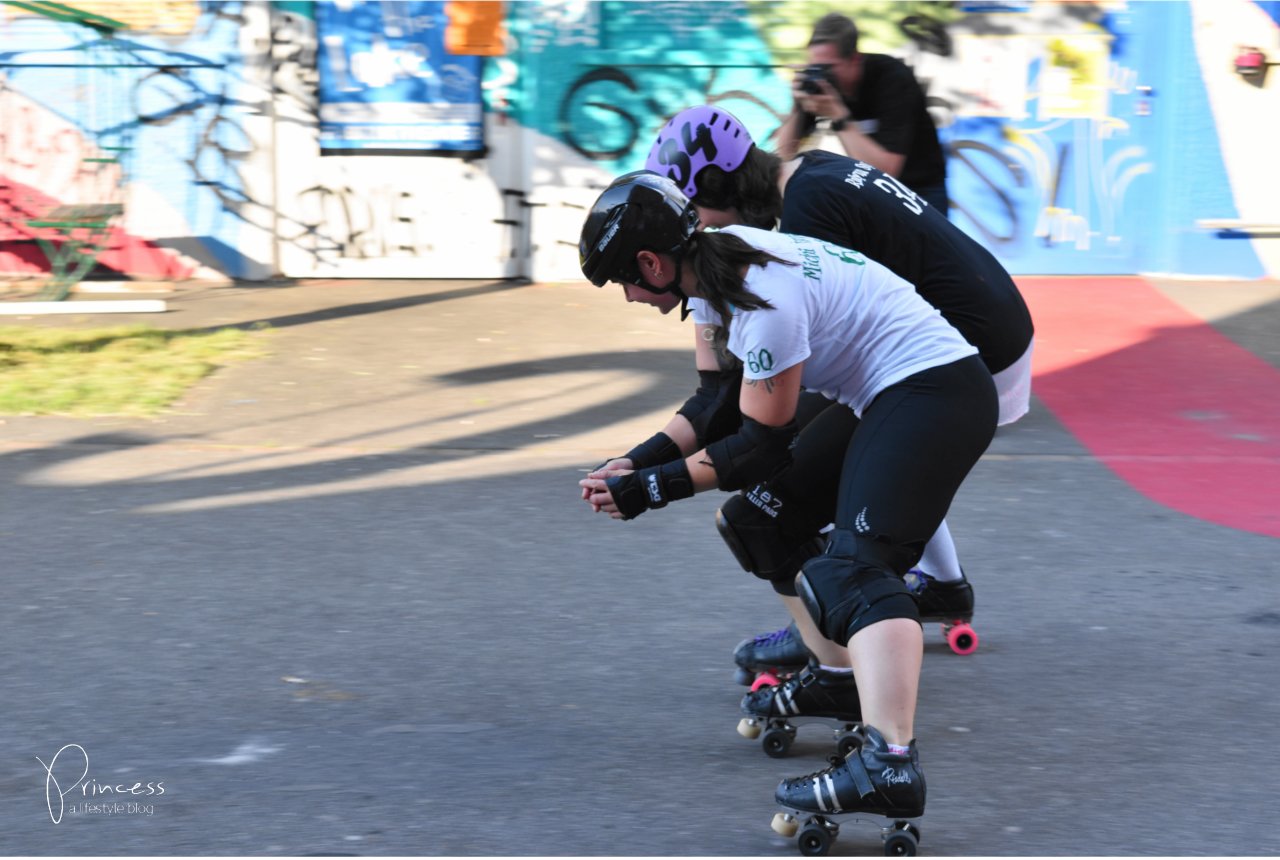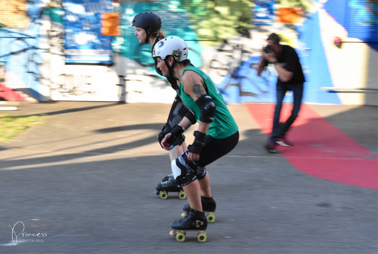 Blogger aus verschiedenen Sparten haben sich versammelt. Es war sehr spannend zu erfahren, über welche Leidenschaften die anderen schreiben. Als erstes lernten wir mit der Bewegungsdynamik zu spielen und ein bewegtes Motiv so einzufangen, dass man die Dynamik auch im Bild wiedererkennt. Ich glaub, ich hab mich da gar nicht so schlecht angestellt. Unsere furchtlosen Models auf Rollschuhen sind übrigens die Zürich City Rollergirlz. Gerne zeige ich euch einige meiner Fotos. Habt Erbarmen, es sind die ersten Schnappschüsse mit einer mir bis dahin unbekannten Kamera 🙂 Nichtsdestotrotz möchte ich euch die Eindrücke des wundervollen Sommerabends auf dem Gelände der Roten Fabrik zeigen!