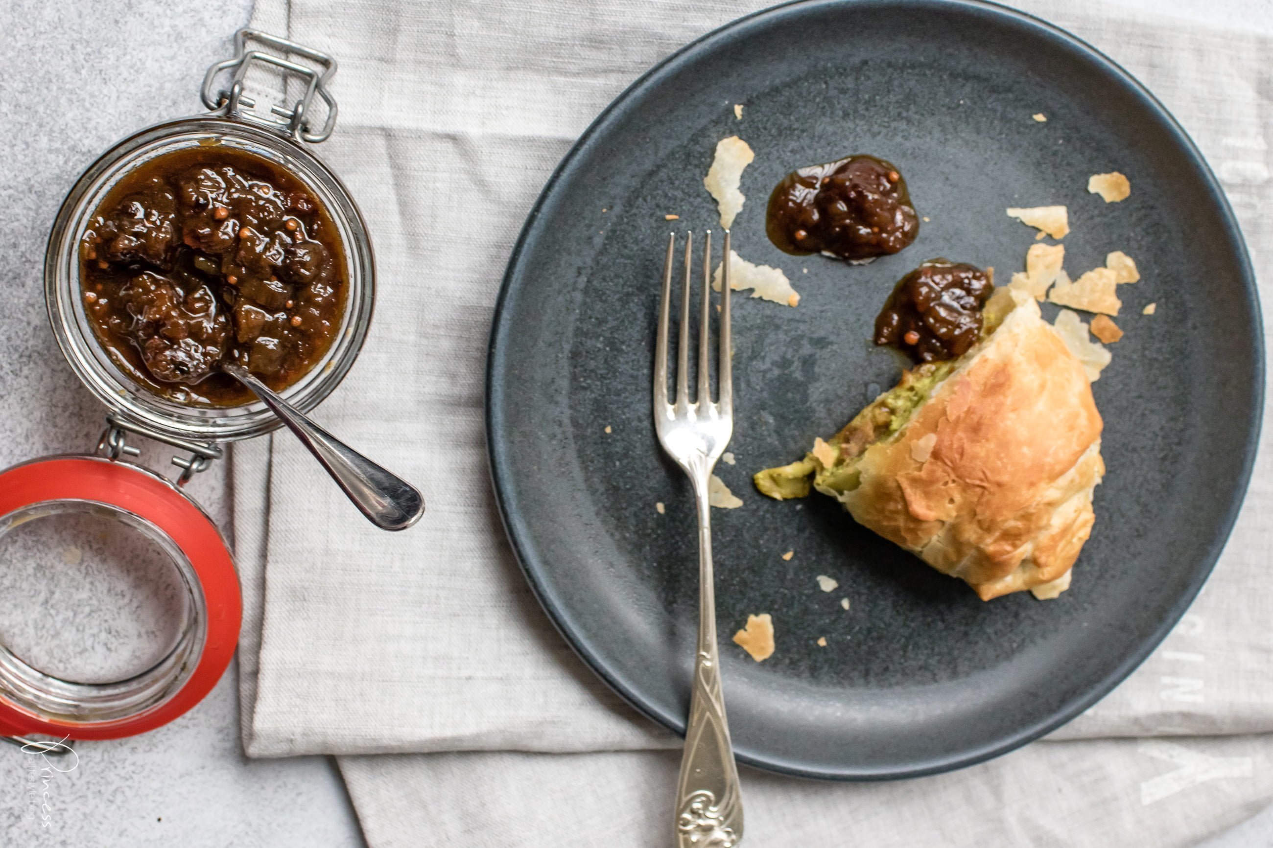 Neben der süssen Interpretation und einer Rhabarber-Galette mit Minz-Pesto, wollte ich unbedingt ein deftiges Rezept mit Rhabarber ausprobieren. Und so entstand dieses absolut feine Rhabarber-Chutney mit tollen Gewürzen. Und natürlich war das noch nicht genug, eine zweite Zutat musste für die April-Challenge her, weshalb ich das Chutney für einen Strudel mit einer Bärlauch-Füllung kombiniert habe. Eine super Kombi!