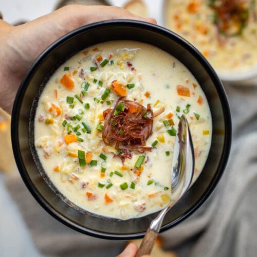 Die Suppe kann mit einem Stück Brot oder etwas Salat im voraus serviert werden.