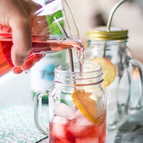 Da ich spezielle Früchte-Eistees verwende, lasse ich den Tee gut eine Stunde mitziehen, bis er abgekühlt ist. Die Tees von CinCin die für Eistee vorgesehen sind, haben einen kräftigeren Geschmack und sind nach dem Abkühlen noch genau so fein. Die verschiedenen Sorten gibt es bald im Shop. Bsp. der Rhabarber Spritz passt auch wunderbar für diese Eistee-Kombi mit Rimuss Fresh. Natürlich könnt ihr auch sonstige Tees verwenden. Nehmt dafür einfach doppelte Menge an Tee, damit er schön kräftig wird nach dem Abkühlen.